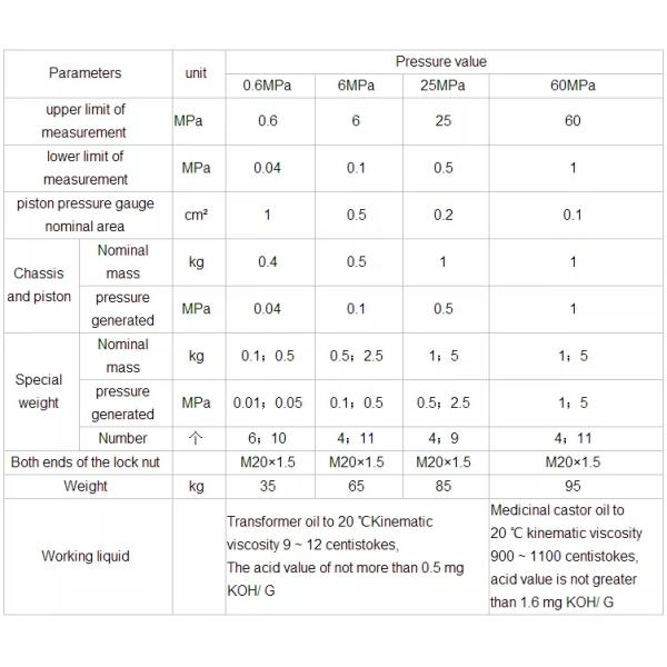 1.Meet the national standards such as JJG59-2007 piston pressure gauge verification procedures